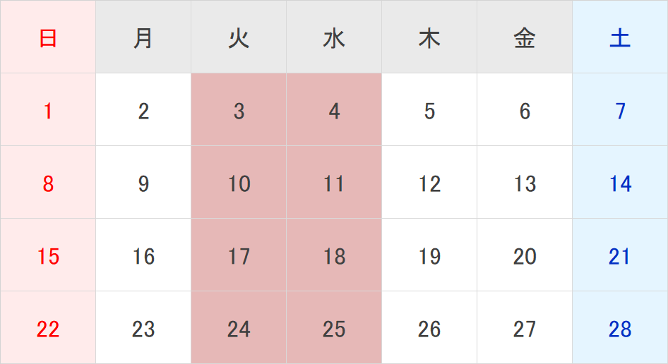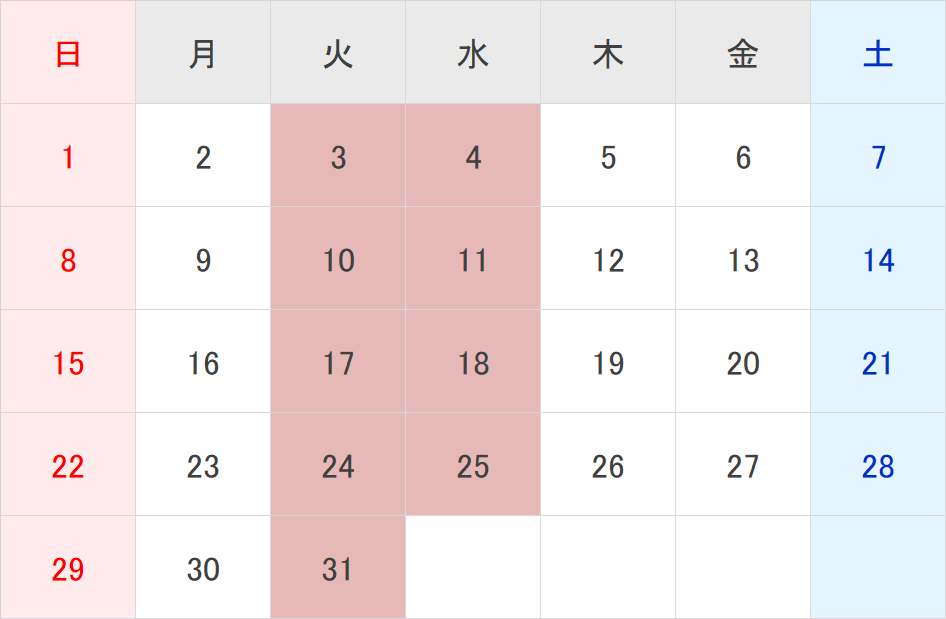 毎週火曜日、第1・2・3水曜日